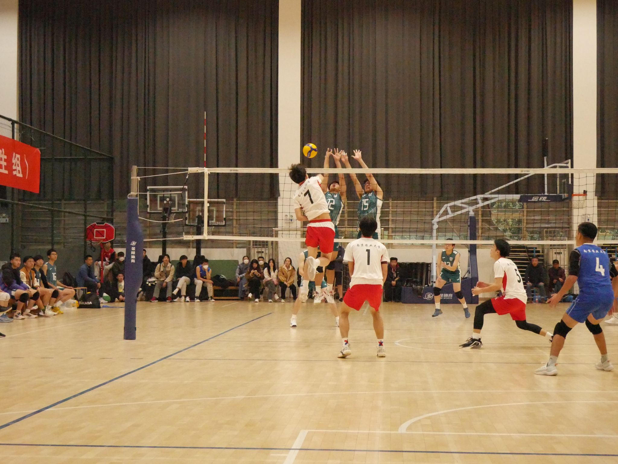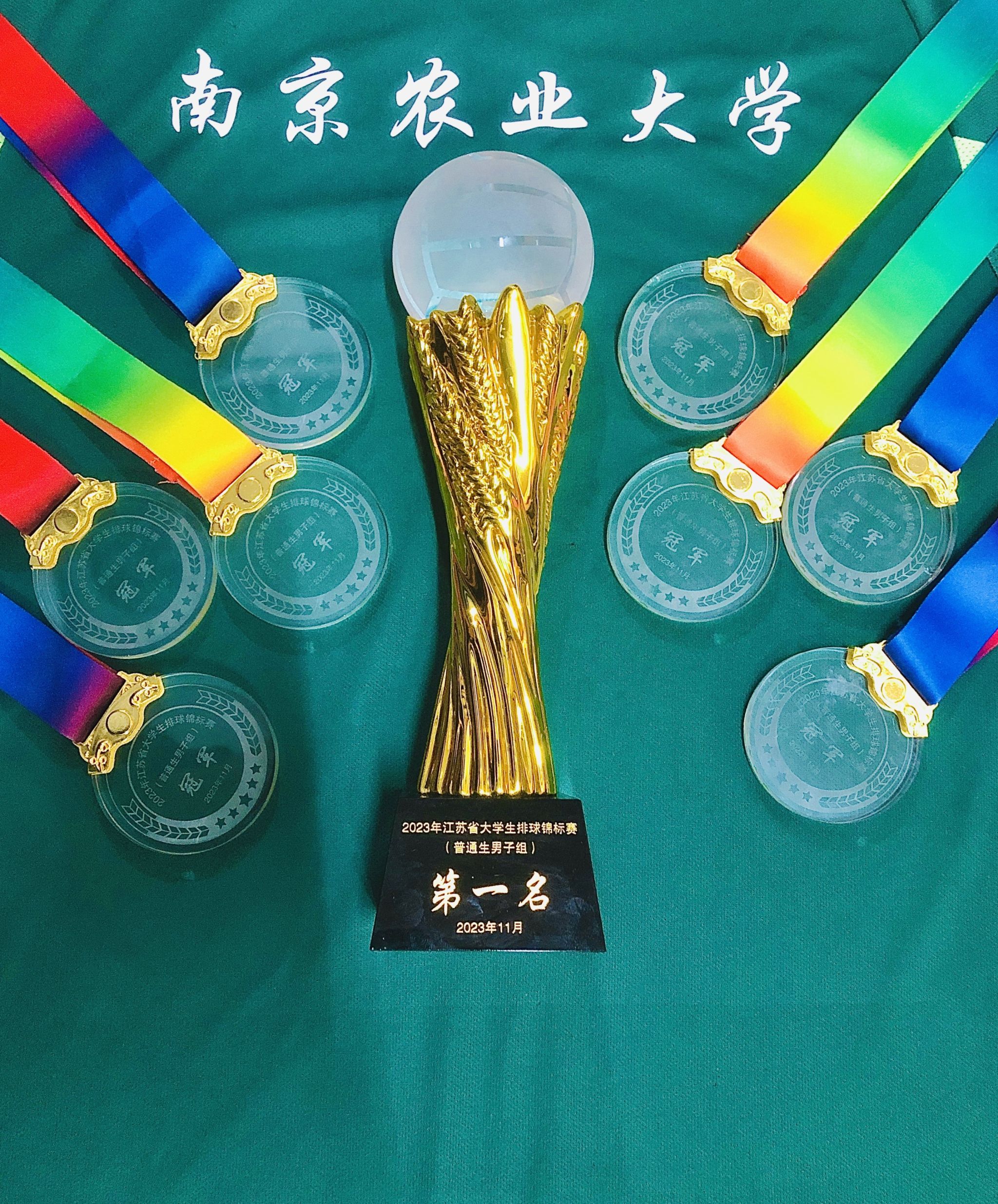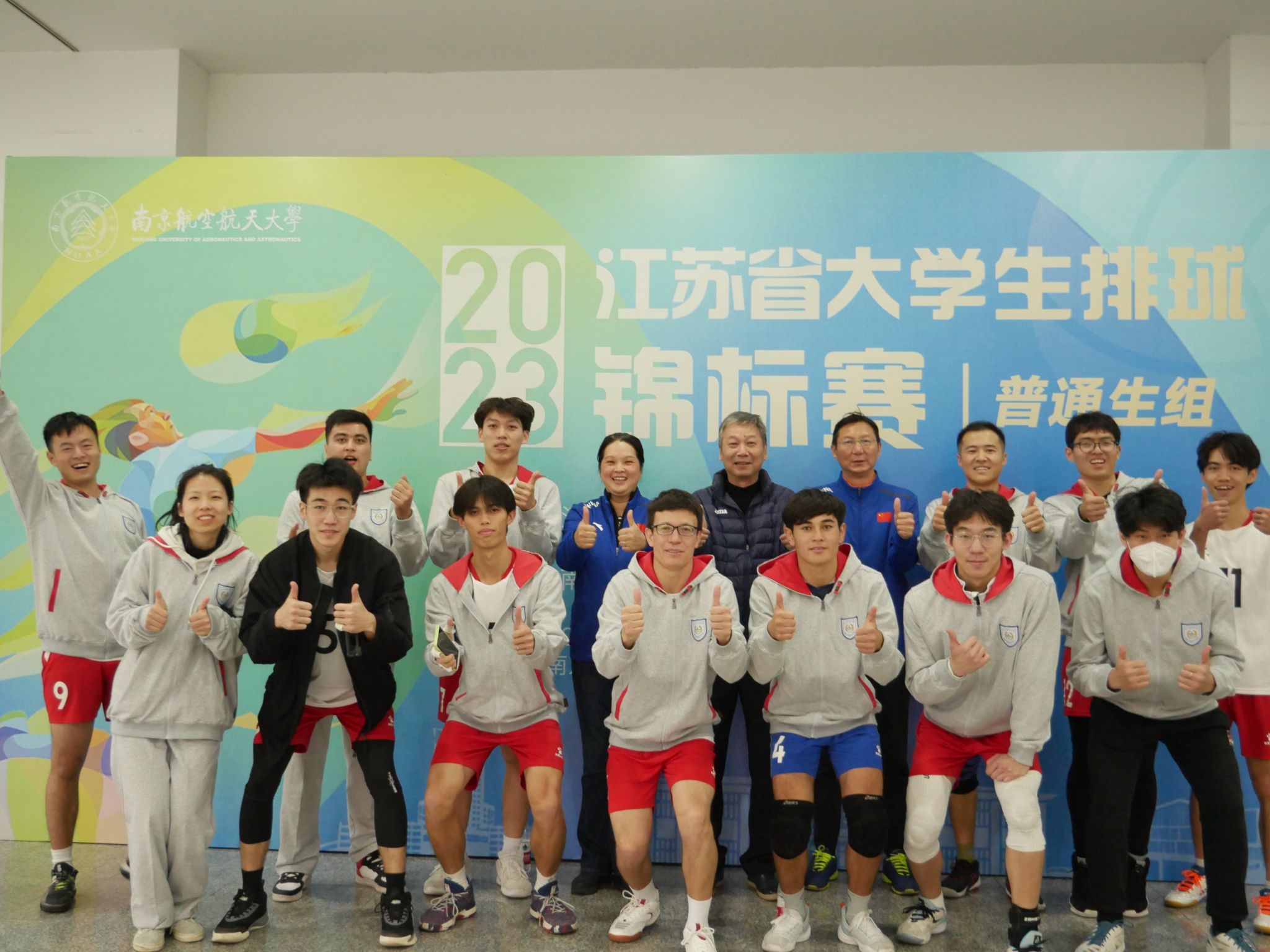 11月23至27日,2023年江苏省大学生(普通生组)排球锦标赛在南京航空航天大学将军路校区举行。我校男子排球队在教练员陆春红和吴亮两位老师带领下,勇夺冠军。