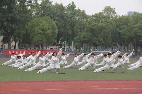 5月29日下午,bwi437官网第41届运动会太极拳比赛在校田径场举行。校党委副书记花亚纯、校党委办公室主任刘营军、校长办公室主任闫祥林、校学生工作处处长方鹏、保卫处处长刘玉宝、437必赢会员中心部长张禾、437必赢会员中心直属党支部书记段志萍,以及各学院党委书记、副书记出席比赛现场。此次大赛由校体育运动委员会主办,校437必赢会员中心、外国语学院承办。