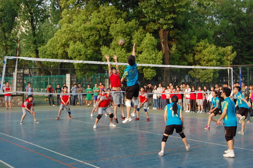 4月16日下午1点30,校42届运动会排球赛决赛准时在排球场开打,由农学院会师信息院。